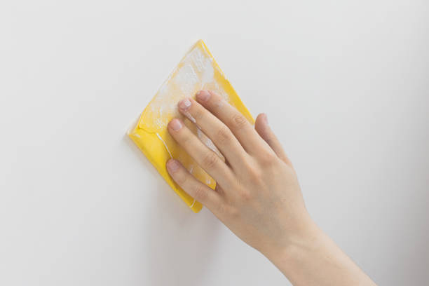 Terkadang ada noda cat, lem dan sisa semen, yang menempel pada beton. Untuk menghilangkannya, gunakan amplas sesuai tingkat kekasaran tertentu.